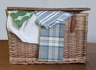 Interesting off cuts from our bespoke human upholstery business go into our Best Bits Basket, waiting to be pieced together for a new life as pet furniture.