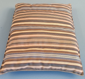 Doggy pillow style mattress, water repellant fabric, and the whole thing goes in the washing machine. The polyester hollowfill fibre inners are quick drying, and give moderate/good support . Plump up regularly for long life!